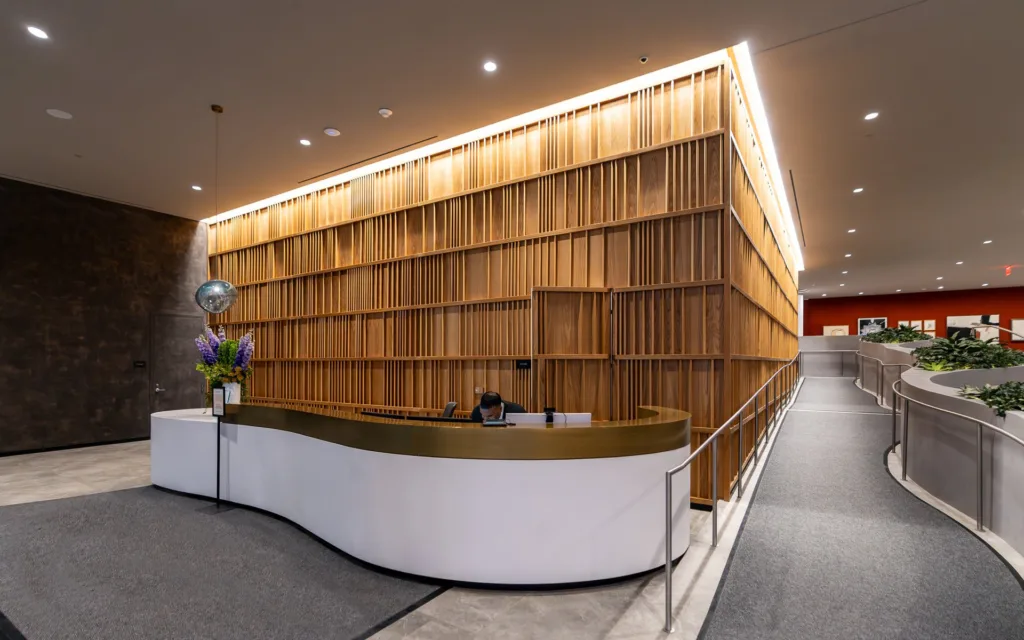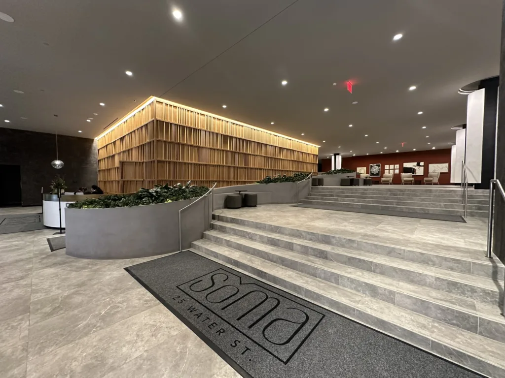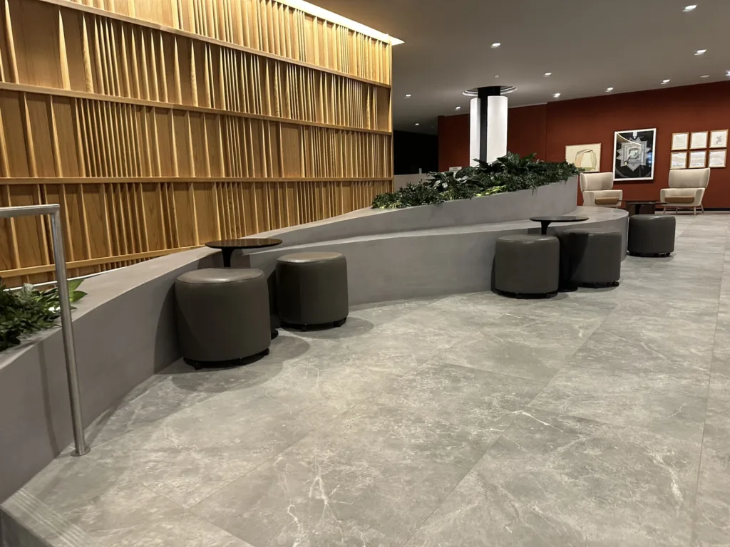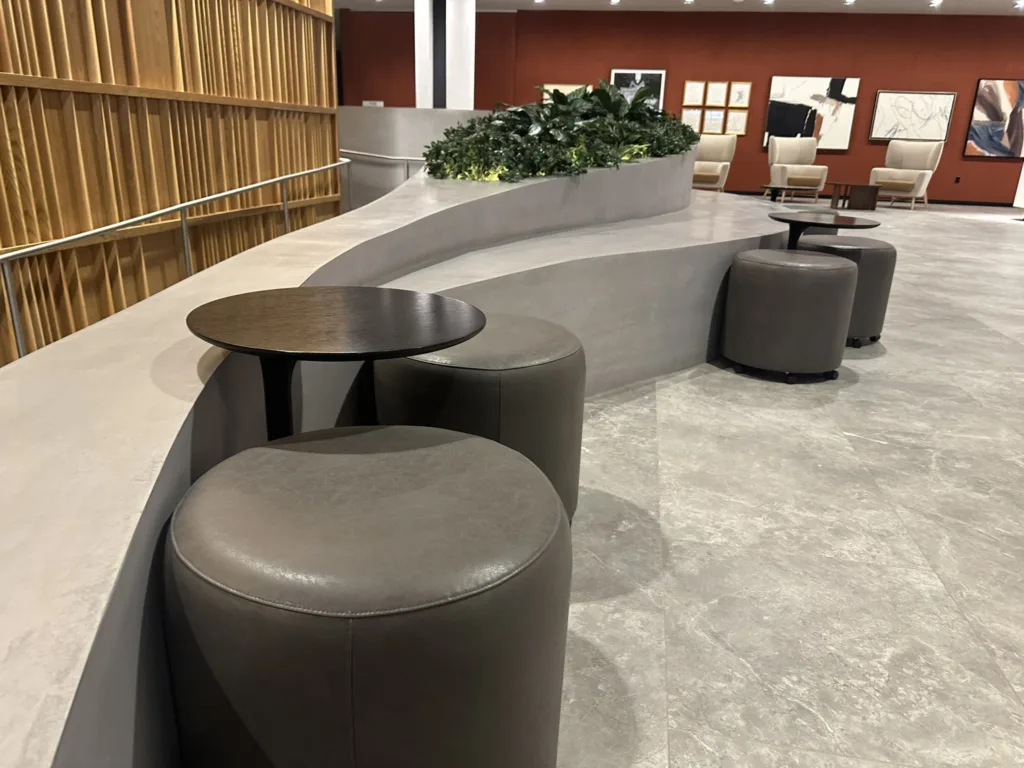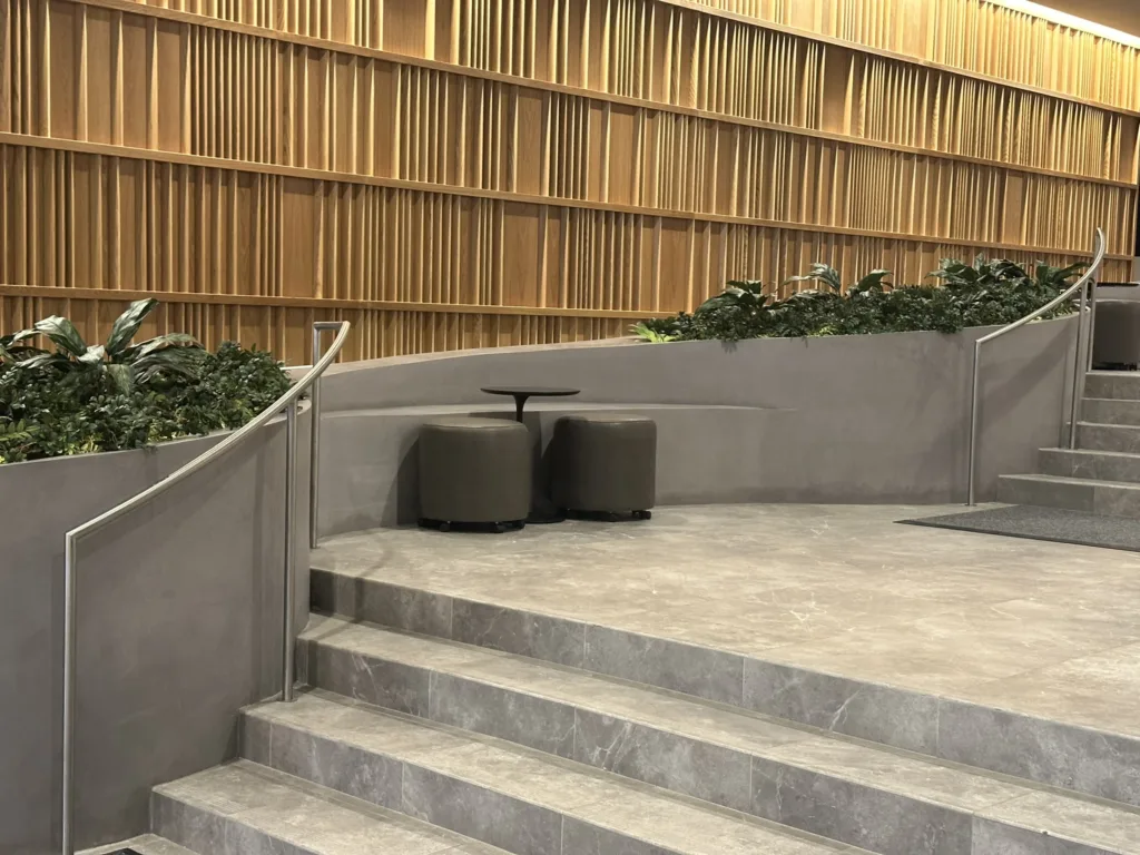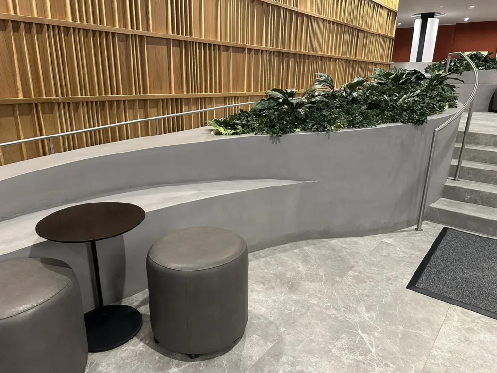 One of our standout projects, 25 Water, is located in the heart of New York City and features four custom-designed bench-planter combinations. The centerpiece is an expansive 25′ x 60′ bench-planter that elegantly connects three levels within the building’s lobby. This stunning installation serves as both a functional seating area and a vibrant planter, blending modern architecture with green spaces. Additionally, two more bench-planter combos were designed for the 25th floor of the skyscraper, offering a seamless blend of seating and greenery in a high-rise setting. The final bench-planter combo is located in the building’s luxurious spa, creating a relaxing, nature-inspired retreat. The project consists of over 140 3D printed pieces, assembled on-site and finished with a sleek micro-crete coating for durability and a contemporary aesthetic.