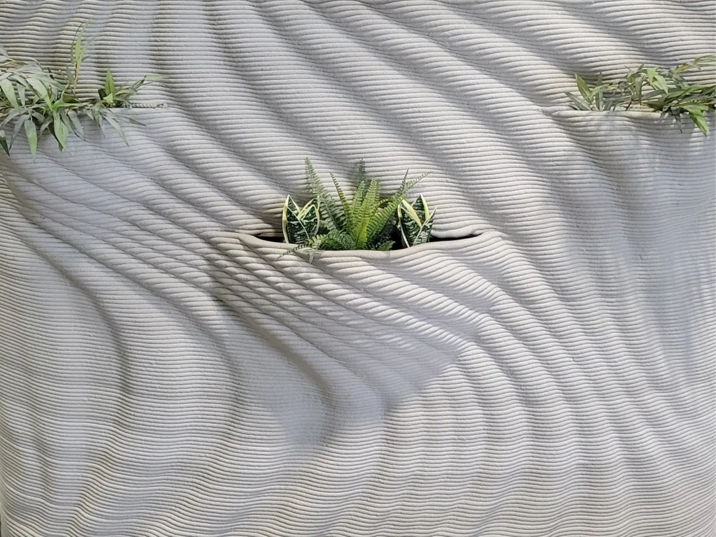 One of the strongest design arguments for 3D-printed concrete in hospitality is the surface itself. The layered texture that results from the printing process is not a byproduct to be hidden. Instead, it is a visual and tactile quality that designers increasingly specify on purpose.